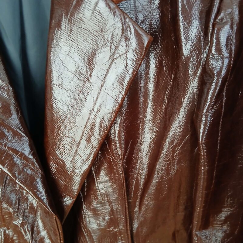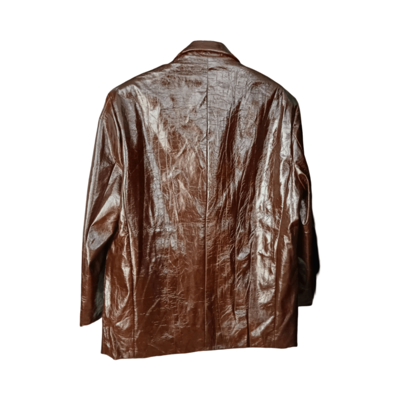 Un blazer sofisticado con acabado efecto vinilo. Diseño estructurado, versátil y moderno, ideal para elevar cualquier look con un toque audaz y elegante. Talla S oversize